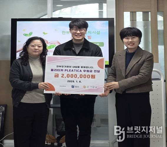 이번 후원은 ‘플리티카 PLEATICA’가 사업 수익을 지역사회에 환원하고자 부천시 여성다문화과와의 논의를 통해 추진됐으며, 홀로 자녀를 양육하는 한부모 모자 가정과 조손가정의 안정적인 생활과 자립을 응원하기 위해 1월 6일 은가람빌에 후원금을 전달했다.