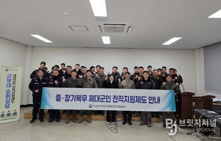 브릿지저널 김경미 기자 | 국가보훈부 인천보훈지청 제대군인지원센터(센터장 서경민)는 1월 13일 육군 수도군단 제1019부대 5년 이상 복무한 중장기복무 전역예정군인을 대상으로 ‘제대군인 전직지원 사업 홍보를 위한 찾아가는 군부대 순회교육’을 실시 했다. ‘찾아가는 군부대 순회교육’은 제대군인지원센터가 각 군부대와의 협조를 통해 교육 접근성과 참여율을 높이기 위해 군부대 내에서 직접 제대예정군인 전직지원제도와 국가보훈제도를 소개하는 프로그램이다.