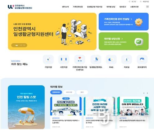 인천일생활균형지원센터 관계자는 “홈페이지와 SNS를 통해 인천시의 일·생활균형 정책과 제도를 시민에게 보다 쉽게 전달하고, 더 많은 시민이 일상 속에서 일·생활균형을 누릴 수 있도록 하겠다”며 “올해는 워라밸 공모전과 캠페인 등 다채로운 사업으로 시민 여러분을 찾아뵐 예정이니 많은 관심과 참여를 바란다”고 말했다.