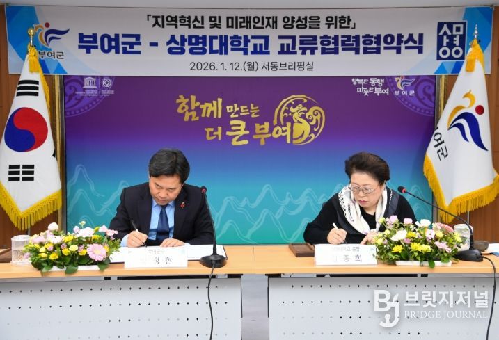 브릿지저널 정보영 기자 | 부여군은 지역혁신과 미래 신산업·문화콘텐츠 산업 분야의 인재를 양성하고, 창업 및 산업 활성화를 지원함으로써 지역경제 발전과 지속 가능한 협력체계를 구축하기 위하여 상명대학교와 업무협약(MOU)을 체결했다고 14일 밝혔다.