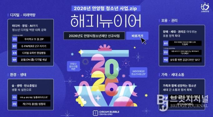브릿지저널 김경미 기자 | 안양시청소년재단은 2026년을 맞아 ‘청소년이 주도하는 변화의 물결, 모두가 함께하는 지속 가능한 미래’라는 비전 아래 10개 소속 기관을 주축으로 신규사업을 본격 추진한다.