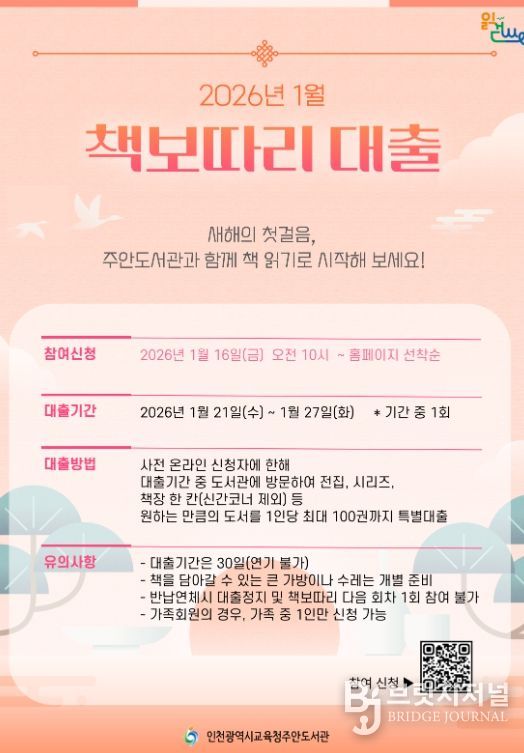 브릿지저널 김경미 기자 | 인천광역시교육청주안도서관은 지역주민의 독서문화 정착과 대출 활성화를 위하여 2025년에 이어 올해도 '책 보따리 대출'을 실시한다고 14일 밝혔다.