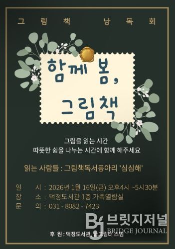 브릿지저널 김경미 기자 | 양주시 덕정도서관은 오는 1월 16일 16시부터 17시 30분까지, 도서관 1층 가족열람실에서 그림책 낭독회 '함께 봄, 그림책'을 운영한다.