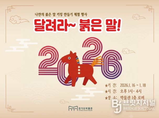 브릿지저널 김경미 기자 | 경기문화재단 경기도박물관(관장직무대행 박본수)은 병오년 새해를 맞아 관람객을 위한 체험형 교육행사 〈달려라~ 붉은 말!〉을 1월 16일부터 18일까지 3일간 박물관 로비에서 운영한다.