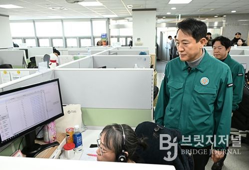 브릿지저널 김경미 기자 | 오세훈 서울시장이 서울 시내버스 파업 이틀째인 14일 아침 시민 출근길과 교통정보센터 토피스 점검에 이어 오전 10시 30분 ‘120다산콜센터(동대문구 난계로28길)’를 방문해 시민 안내 및 불편접수 체계를 확인하고, 상담사들에게 시민 불편 최소화에 힘써 줄 것을 당부했다.