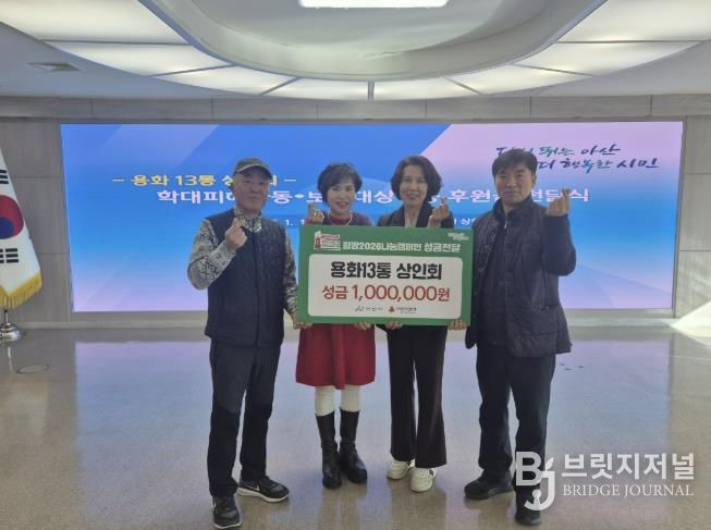 브릿지저널 정보영 기자 | 아산시는 용화13통 상인회가 지역 내 학대 피해 및 보호대상을 위해 후원금을 기탁했다고 밝혔다.