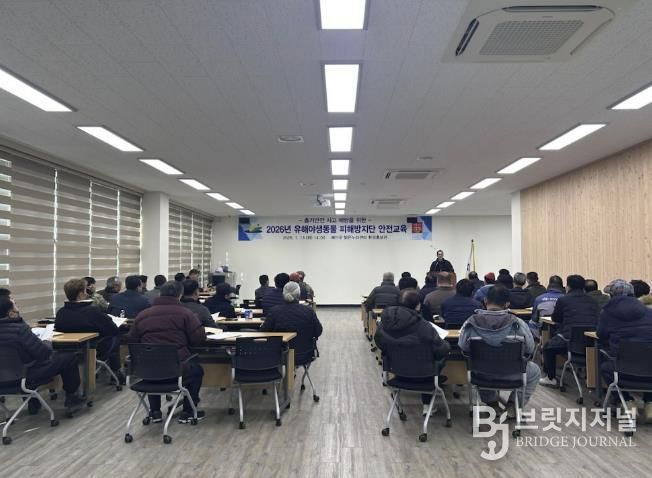 브릿지저널 정보영 기자 | 예산군은 지난 13일 맑은누리센터 환경홍보관에서 ‘2026년 유해야생동물 피해방지단 안전교육’을 실시했다.