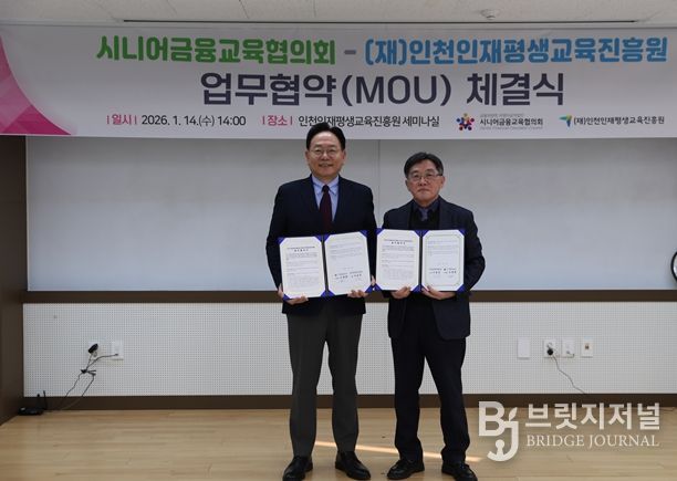 브릿지저널 김경미 기자 | 인천인재평생교육진흥원과 시니어금융교육협의회은 14일 인천 시민의 평생교육 발전과 중·장년층 및 고령층의 안정적인 금융생활 지원을 위해 업무협약을 실시했다.