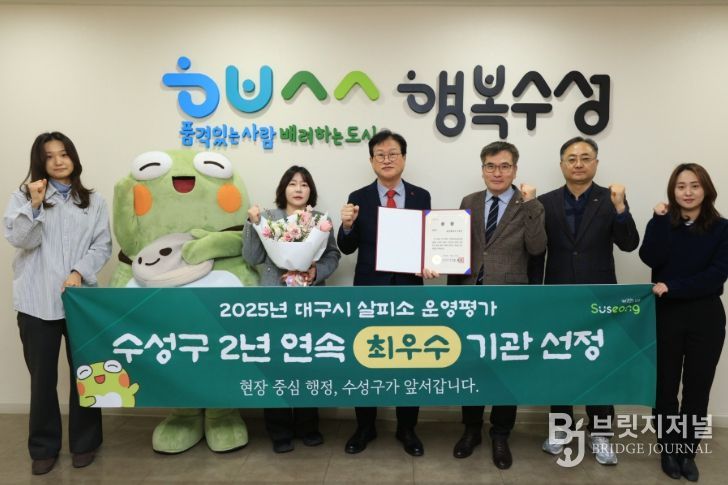 브릿지저널 김진석 기자 | 대구 수성구는 ‘대구시 살피소 운영 실적 평가’에서 2년 연속 최우수 기관으로 선정됐다고 밝혔다.