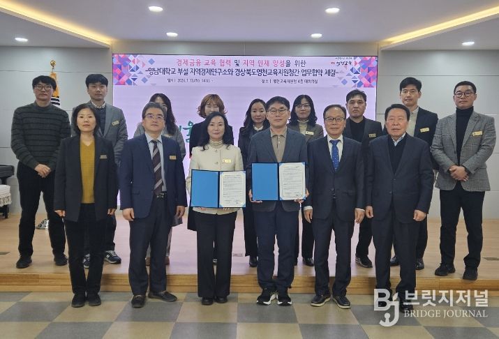 브릿지저널 정보영 기자 | 경상북도영천교육지원청은 1월 13일 영남대학교 부설 지역경제연구소와 지역사회 연계를 통한 경제·금융 교육 활성화를 위한 업무협약(MOU)을 체결했다.