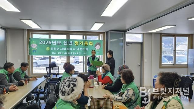 브릿지저널 김경미 기자 | 양평군 강하면 새마을회는 지난 13일 강하면 새마을분회 회의실에서 회원 20여 명이 참석한 가운데 2026년 새해를 맞아 신년 정기회의를 개최했다.