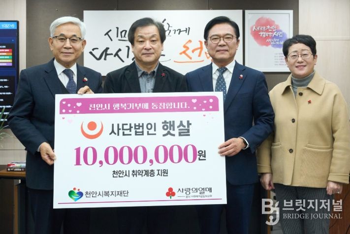브릿지저널 정보영 기자 | (재)천안시복지재단은 15일 ㈔햇살이 취약계층을 위한 성금 1,000만 원을 기탁했다고 밝혔다.