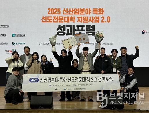 브릿지저널 윤나영 기자 | 강원도립대학교는 ‘신산업분야 특화 선도전문대학 지원사업 2.0 성과포럼’ 우수성과 전시 시상식에서 대학 부문 우수성과 ‘대상’ 수상과 함께, 소속 학생인 한재민 학생이 개인 부문 사업 성과 대상(교육부 장관상)을 수상하여 대학·개인 2개 부문을 석권했다.