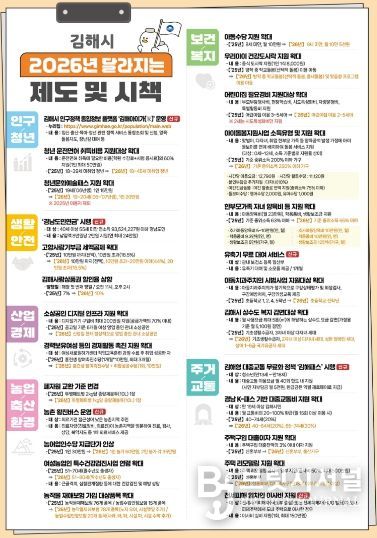 브릿지저널 김경미 기자 | 김해시는 16일 2026년 새해 달라지는 6개 분야 59개 제도와 시책을 안내했다.