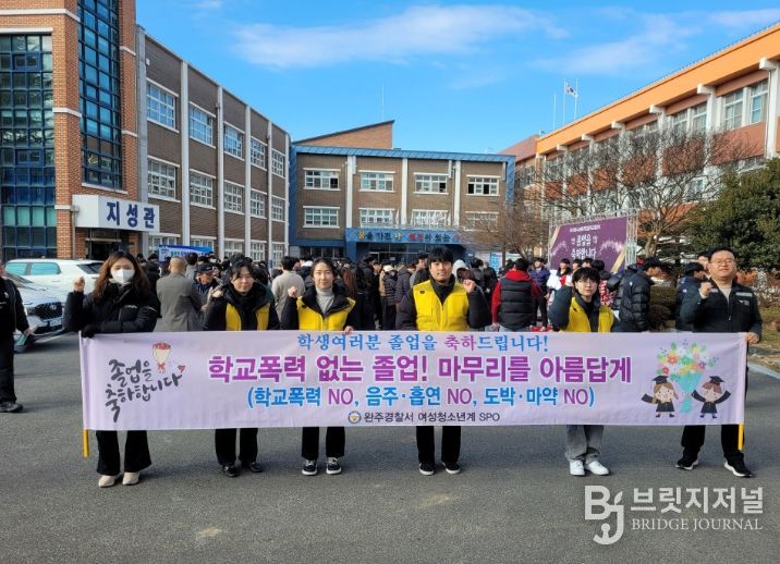 행사는 졸업식 당일 학교 정문과 진입로 등 청소년 밀집지역을 중심으로 진행되며, 청소년 폭력 및 비행 예방 캠페인과 함께 완주경찰서와 합동 순찰을 병행해 현장 중심의 예방 활동을 강화했다.