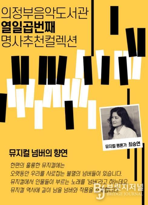 브릿지저널 김경미 기자 | 의정부음악도서관은 1월 23일부터 뮤지컬 평론가 최승연의 추천사와 함께 음반을 전시‧소개하는 ‘명사추천컬렉션’을 운영한다.