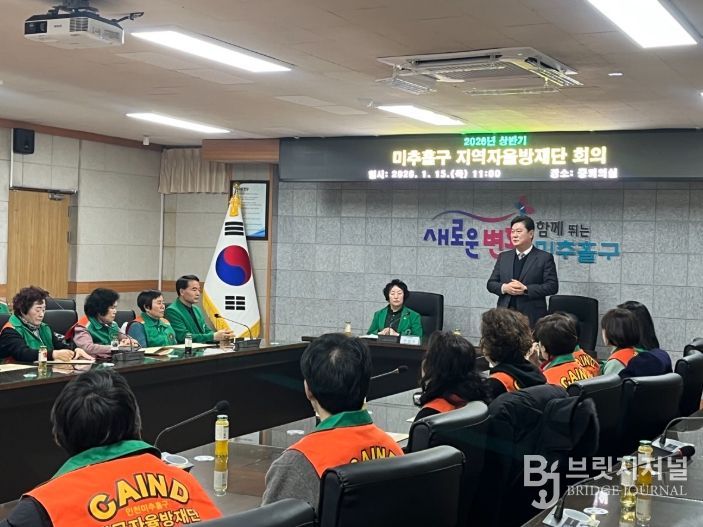 브릿지저널 김경미 기자 | 인천 미추홀구는 지난 15일 구청 중회의실에서 2026년 상반기 미추홀구 지역자율방재단(단장 전선자) 회의를 개최했다고 밝혔다.