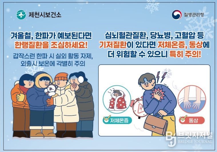 브릿지저널 김경미 기자 | 제천시보건소(소장 안순덕)가 겨울철 한파로 인한 건강 피해를 예방하기 위해 독거 어르신, 만성질환자, 거동 불편자 등 건강 취약계층을 대상으로 집중 건강관리를 추진한다.