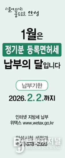 브릿지저널 김경미 기자 | 안성시는 2026년도 정기분 등록면허세(면허분) 4만 2,100건에 대해 총 5억 5천만 원을 부과했다고 밝혔다.