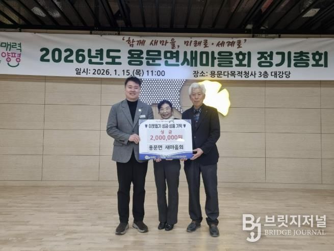 브릿지저널 김경미 기자 | 양평군 용문면은 지난 15일 용문면새마을회가 새해를 맞아 지역 내 어려운 이웃을 돕기 위한 성금 200만 원을 기탁하며 따뜻한 나눔을 실천했다고 밝혔다.