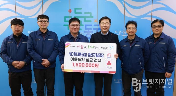브릿지저널 윤나영 기자 | HD현대중공업 생산지원담당(부서장 박필용 수석)은 1월 16일 오전 10시 동구청을 방문해 이웃돕기 성금 150만 원을 전달했다.