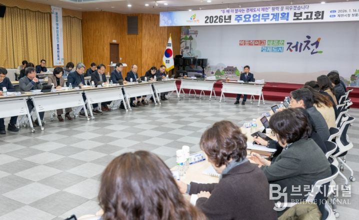브릿지저널 김경미 기자 | 제천시는 지난 16일 시청 청풍호실에서 전 부서가 참여하는 ‘2026년 주요업무계획 보고회’를 개최하고, 새해 시정 운영 방향과 핵심사업 전반을 점검했다.