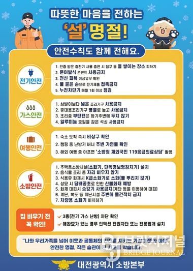 브릿지저널 정보영 기자 | 대전소방본부는 2월 설 명절을 앞두고 1월 19일부터 2월 15일까지‘설 명절 대비 화재예방대책’을 추진한다.
