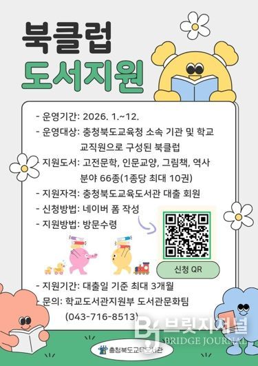 브릿지저널 김경미 기자 | 충청북도교육청 직속기관 교육도서관은 1월부터 12월까지 도내 교직원의 지속적인 독서 활동을 장려하고 책 읽는 문화를 확산하기 위해 2026년 '공감하는 북클럽 도서 지원 사업'을 연중 상시 운영한다.