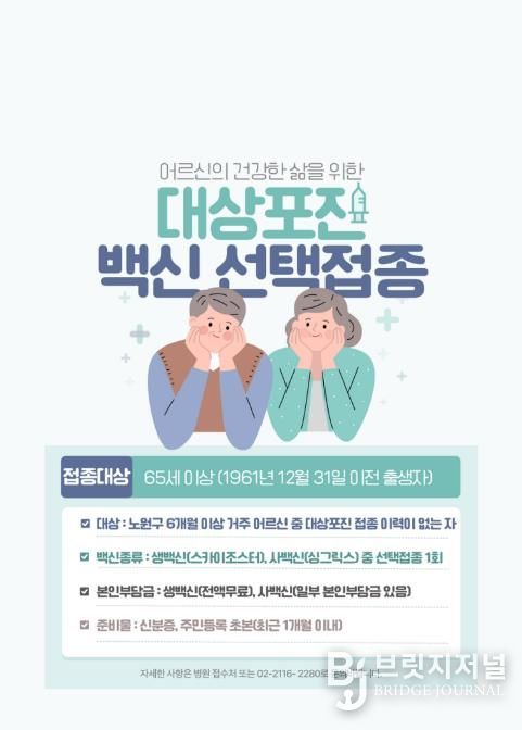 브릿지저널 김경미 기자 | 서울 노원구가 65세 이상 모든 어르신을 대상 보편적 예방접종 정책을 안정적으로 운영하고 있다고 밝혔다.