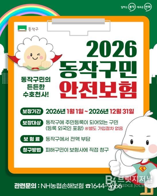 브릿지저널 김경미 기자 | 동작구는 2026년부터 ‘구민안전보험’을 확대 운영한다고 19일 밝혔다.