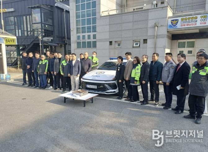 브릿지저널 김경미 기자 | 포천동 자율방범대는 지난 17일 포천파출소 앞에서 순찰차량의 무사고 운행과 대원들의 안전한 활동을 기원하는 ‘순찰차량 안전기원제’를 개최했다.