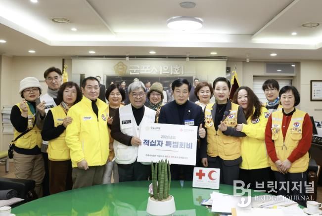 브릿지저널 김경미 기자 | 군포시의회가 대한적십자사 경기도지사에 2026년도 적십자 특별회비를 전달했다.