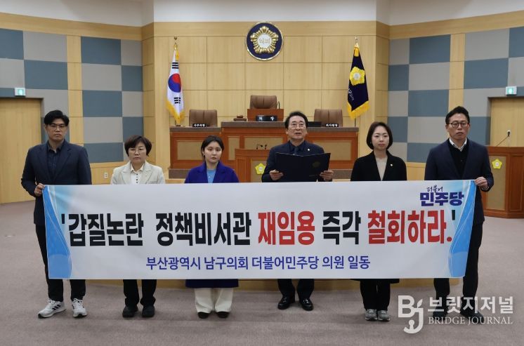 브릿지저널 윤나영 기자 | 부산 2026년 1월 19일 남구의회 더불어민주당 의원 6인은 현재 남구청장과 남구청공무원노동조합의 갈등국면에 대한 성명서를 발표했다.
