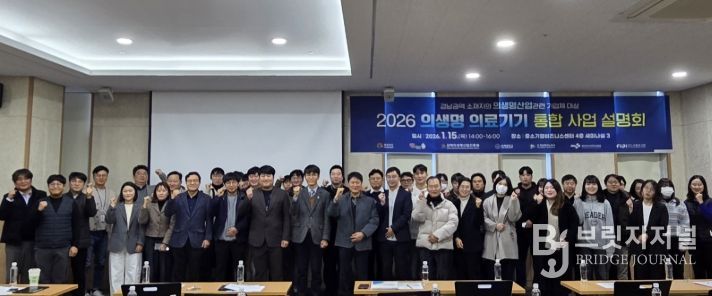 브릿지저널 김경미 기자 | 김해의생명·산업진흥원은 지난 15일, 김해중소기업비즈니스센터에서 지역 내 의료기기·헬스케어 기업의 성장을 돕기 위한 '2026년 의생명·의료기기 통합 사업설명회'가 성황리에 마무리됐다고 밝혔다.