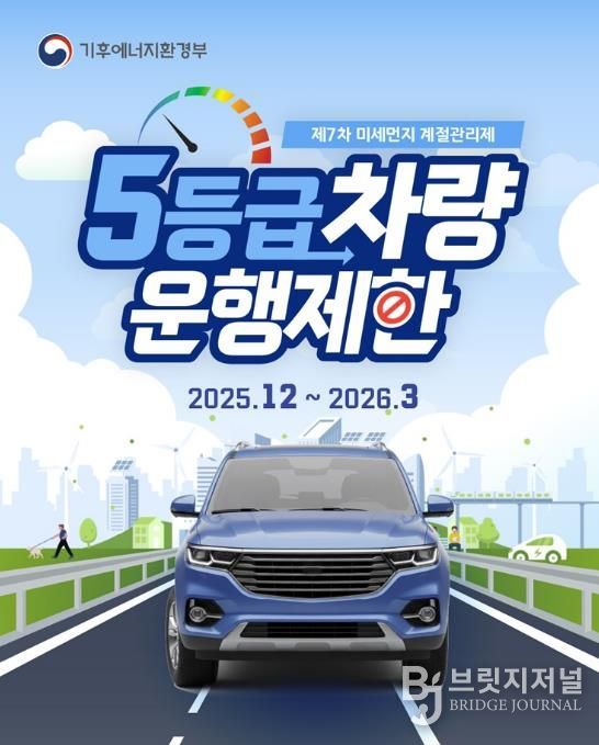 브릿지저널 김경미 기자 | 파주시는 제7차 계절관리제 기간인 2025년 12월부터 2026년 3월까지 배출가스 5등급 차량에 대한 단속을 실시하고 있다.