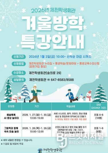 브릿지저널 김경미 기자 | 제천학생회관은 겨울방학을 맞아 인공지능(AI)을 활용한 디지털 창작 활동 및 그림책을 연계한 미술 놀이 프로그램 등 창의·예술 체험 중심의 특별 프로그램을 운영한다.