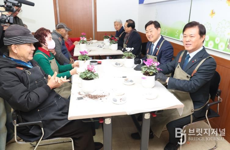 시설을 둘러본 김 지사는 고립 위기 세대 등 10여 명과 함께 식물 화분 심기와 꾸미기 등 ‘치유(힐링) 원예 체험’ 프로그램에 직접 참여하며 이웃사랑을 실천했다.