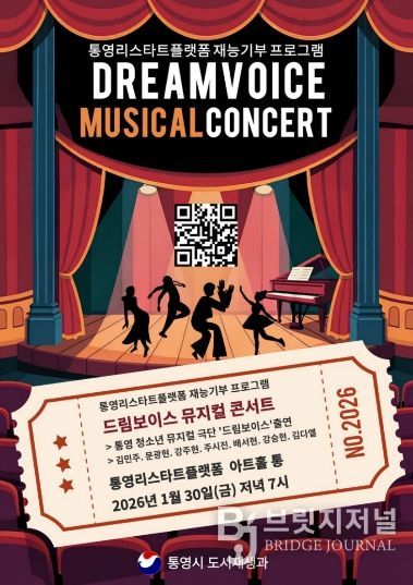 브릿지저널 김경미 기자 | 통영시는 오는 30일 저녁 7시 통영리스타트플랫폼 1층 아트홀 통에서 통영리스타트플랫폼 재능기부 프로그램 ‘드림보이스 뮤지컬 콘서트’를 개최한다.