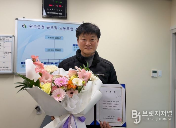 브릿지저널 윤나영 기자 | 완주군청 공무직 노동조합은 20일 모바일 투표로 진행된 제6대 완주군청 공무직노동조합 위원장 선거 결과, 김상곤 후보가 상대 후보를 제치고 당선을 확정 지었다. 완주군청 공무직노동조합을 이끌 차기 수장으로 김상곤 현 위원장이 다시 한번 선택을 받으며 ‘5선 당선’이라는 대기록을 세웠다.