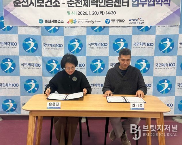 브릿지저널 윤나영 기자 | 춘천시보건소와 춘천체력인증센터(센터장 권기성)가 20일 강원대 백령스포츠센터에서 춘천시민의 건강증진 활동과 체력수준 향상 및 상호 교류⬝협력 강화를 위한 업무협약을 체결했다.