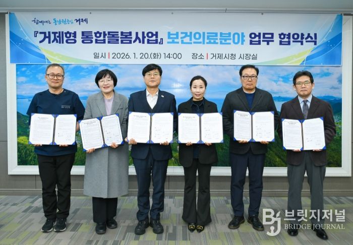 브릿지저널 김경미 기자 | 거제시는 지난 20일, 시장실에서 관내 의료기관 및 거제시약사회와 함께 '거제형 통합돌봄사업' 보건의료분야 업무 협약을 체결하고, 민관 협력 기반의 의료·돌봄 통합지원 체계 구축을 본격화했다고 밝혔다.