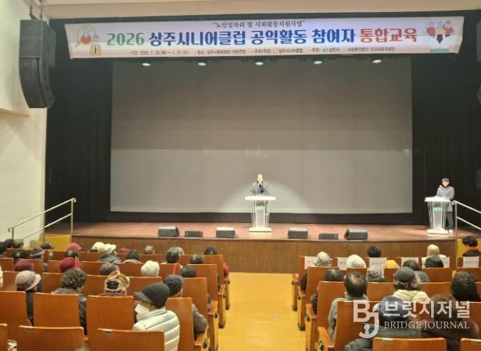 브릿지저널 정보영 기자 | 상주시니어클럽은 2026년 노인일자리 및 사회활동지원사업 참여자를 대상으로 1월 20일부터 21일까지 이틀간 상주문화회관에서 통합교육을 실시했다.