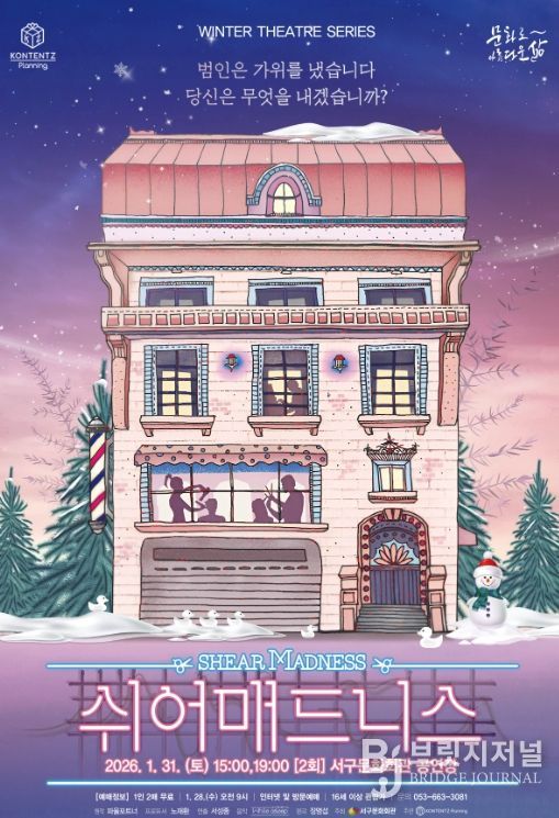 브릿지저널 김진석 기자 | 서구문화회관은‘Winter Theatre Seires(겨울 연극 시리즈)’의 첫 번째 순서로 연극'쉬어매드니스'를 1월 31일 오후 3시, 7시 (2회) 무대에 올린다.