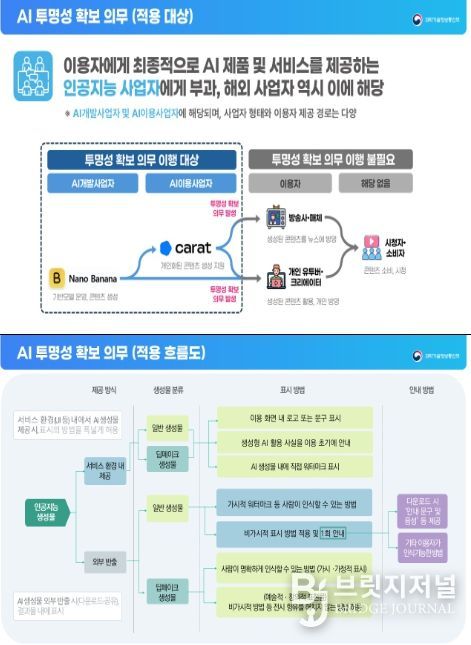 브릿지저널 김경미 기자 | 과학기술정보통신부는 1월 22일'인공지능 발전과 신뢰 기반 조성 등에 관한 기본법' ‘인공지능 기본법’)상 투명성 확보 의무(제31조)의 구체적인 이행 방안을 담은'인공지능 투명성 확보 안내 지침(가이드라인)'을 공개했다.