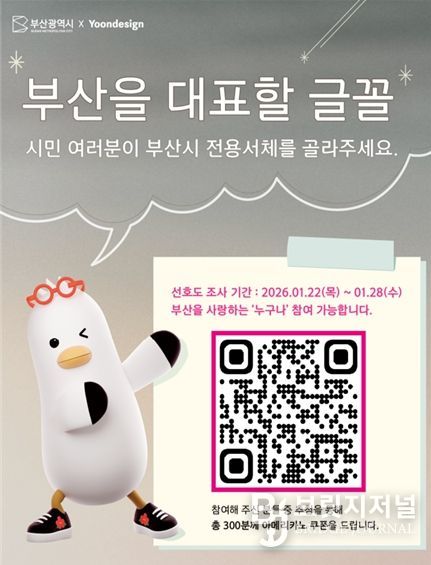 브릿지저널 윤나영 기자 | 부산시는 도시브랜드 정체성을 강화하고 공공디자인 품질을 높이기 위해 시민과 공무원을 대상으로 '부산 도시브랜드 전용 서체 개발' 선호도 조사를 실시한다고 밝혔다.