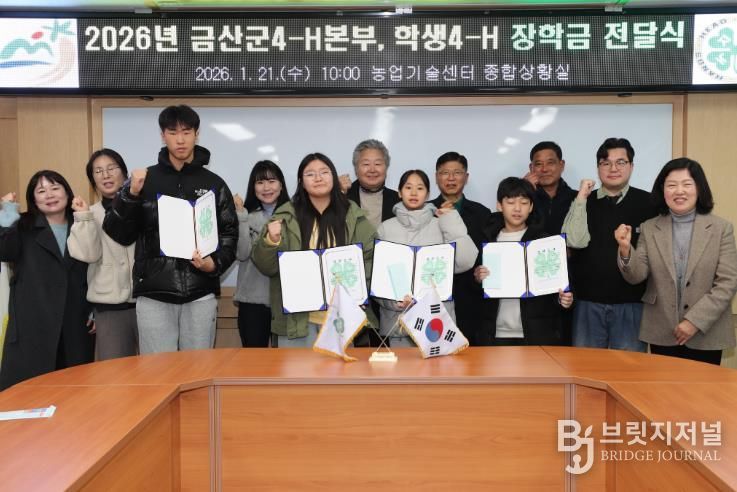 오희승 금산군4-H본부 회장은 “학생4-H 회원들이 지역 농업과 농촌 발전을 이끌어 갈 미래 인재로 성장할 수 있도록 지속적인 관심과 지원을 이어가겠다”며 “이번 장학금이 학생들의 학업과 활동에 실질적인 도움이 되길 바란다”고 말했다.