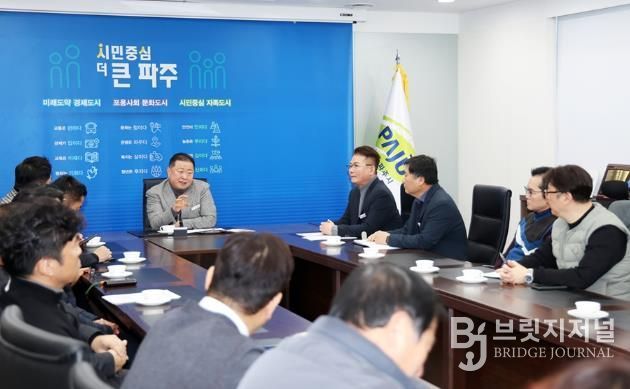 브릿지저널 김경미 기자 | 파주시는 지난 20일 한국공인중개사협회 파주시지회와 간담회를 열고, 건전한 부동산 거래 질서를 확립하기 위한 중개업 현장의 목소리를 청취하는 시간을 가졌다.