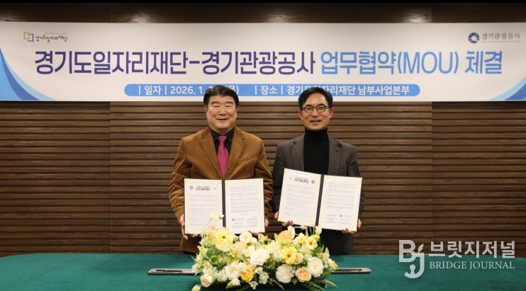 브릿지저널 김경미 기자 | 경기도일자리재단과 경기관광공사는 22일 경기도일자리재단 남부사업본부에서 ‘경기북부 관광 활성화 및 유연근무 확산을 위한 업무협약(MOU)’을 체결했다.