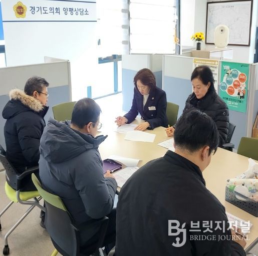 브릿지저널 김경미 기자 | 경기도의회 박명숙 의원(국민의 힘, 양평 1)과 이혜원 의원 (국민의힘, 양평 2) 은 22일 양평군청 기획 예산담당관 관계자로부터 ‘경기 생활 쏙(SOC) 환원 사업’ 공모 추진 계획을 보고받고 사업 방향에 대해 함께 논의하는 시간을 가졌다.