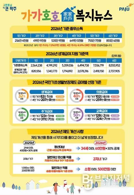 브릿지저널 김경미 기자 | 파주시는 2026년 복지제도가 달라짐에 따라 완화된 복지 정보를 제공하는 ‘가가호호 복지뉴스’우편물을 발송했다.
